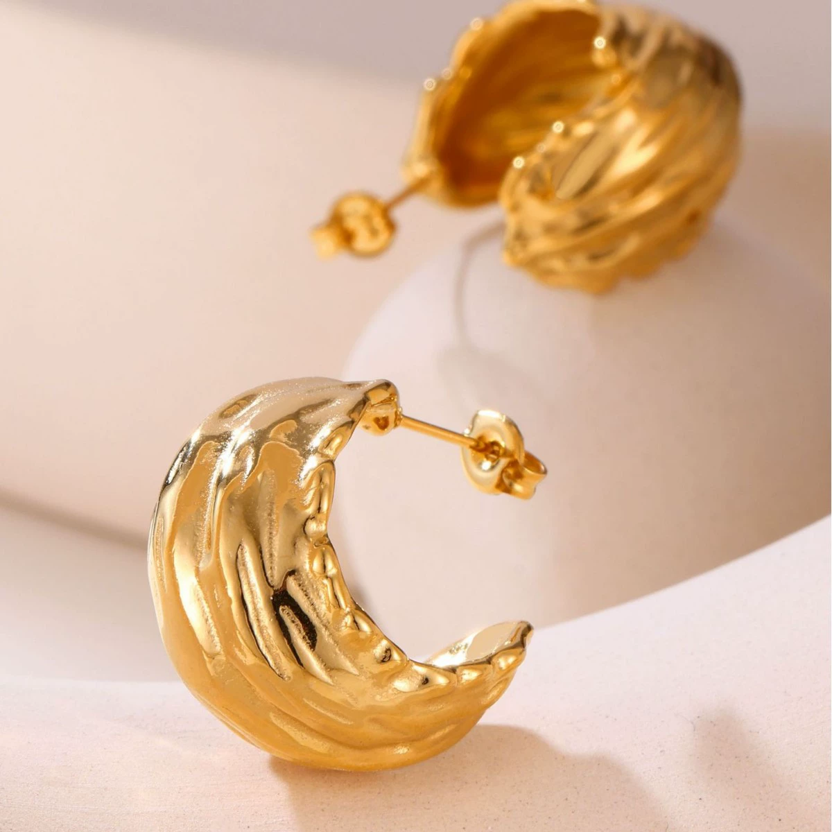 Tired of basic hoops that blend into the background? Meet your new go-to statement piece: our Sculpted Stainless Steel Gold Hoop Earrings.