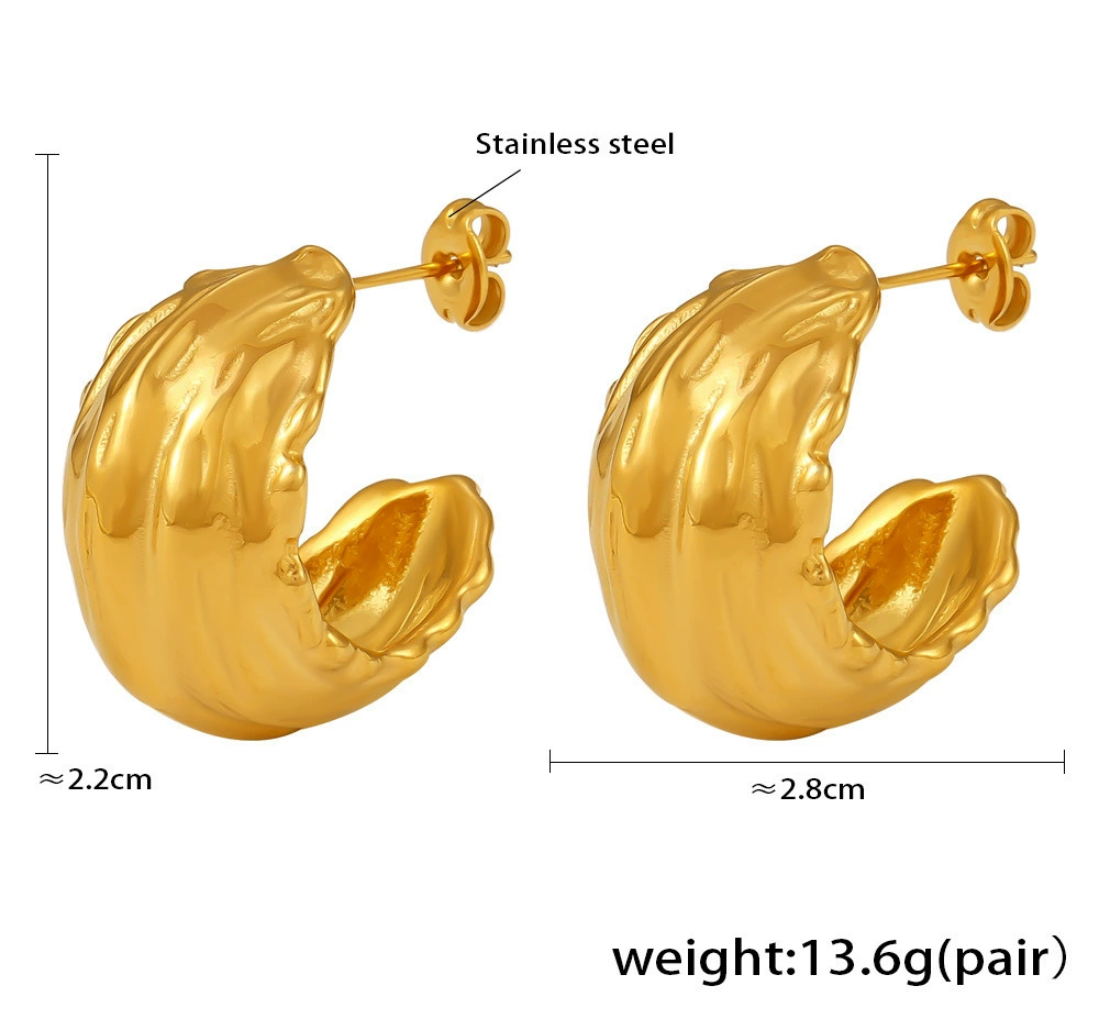 The textured curved design isn’t just pretty—it’s art for your ears: each pair is crafted from durable stainless steel (no tarnishing, no irritation for sensitive skin) and dipped in rich gold tone, so they stay shiny wear after wear. At 13.6g per pair, they’re light enough to forget you’re wearing them… until someone asks, “Where did you get those?”