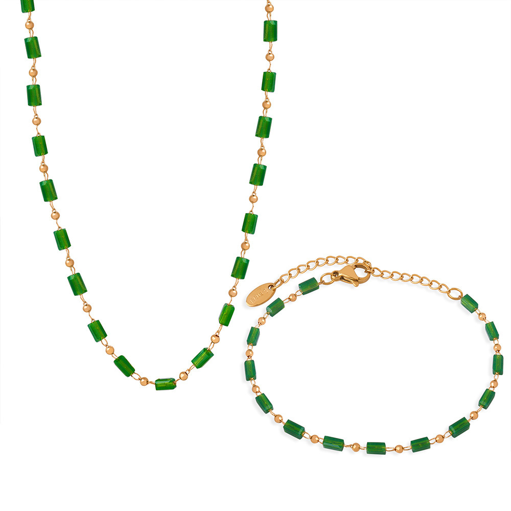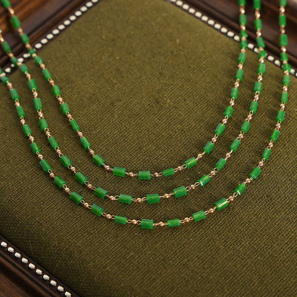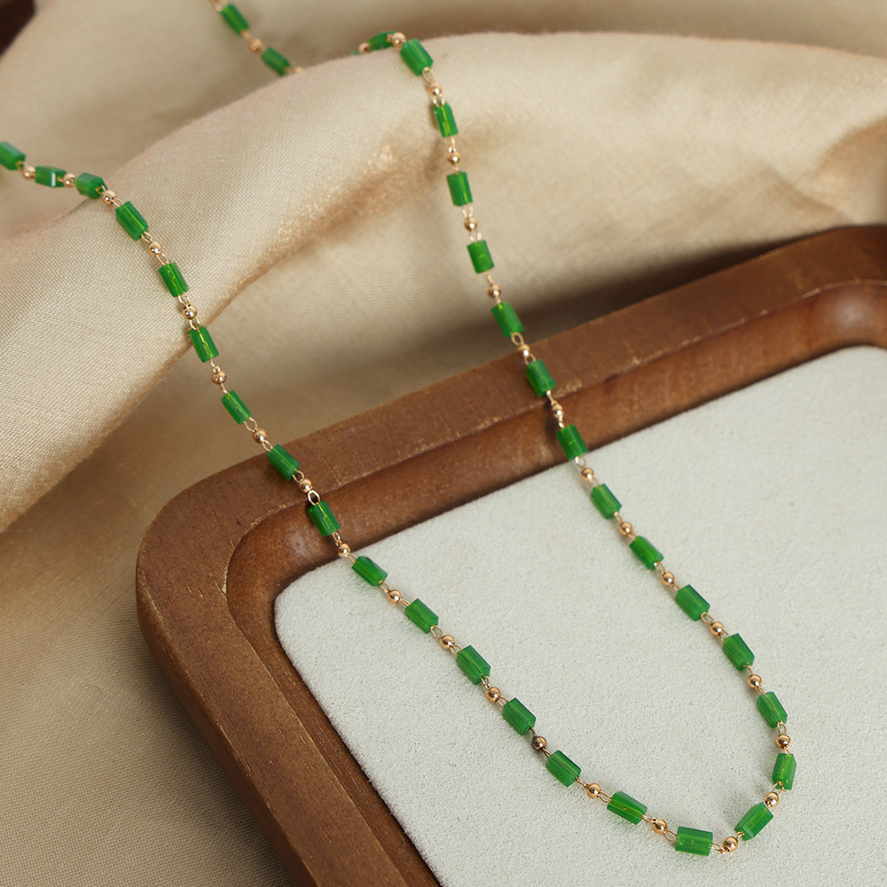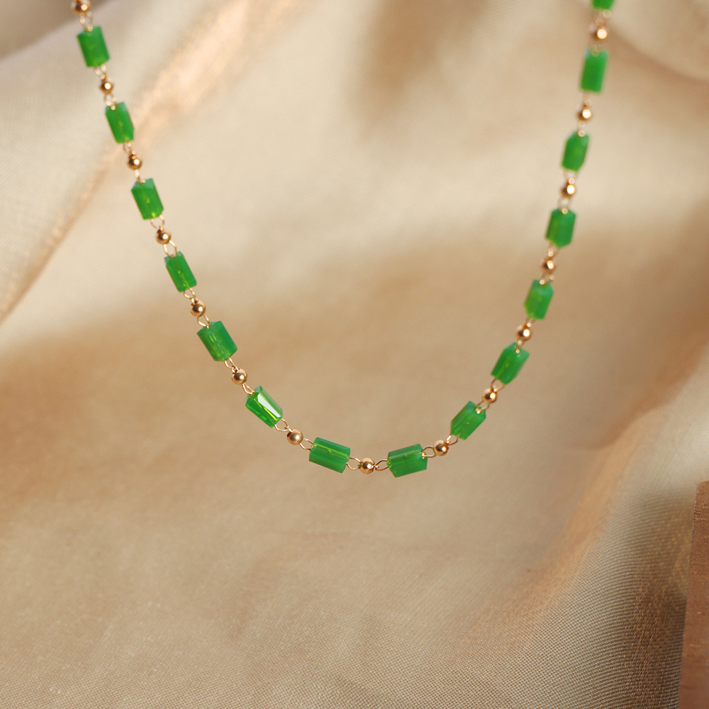 Clean, minimalist and naturally inspired. This green crystal necklace brings a fresh, gentle aesthetic that blends calm elegance with modern simplicity.