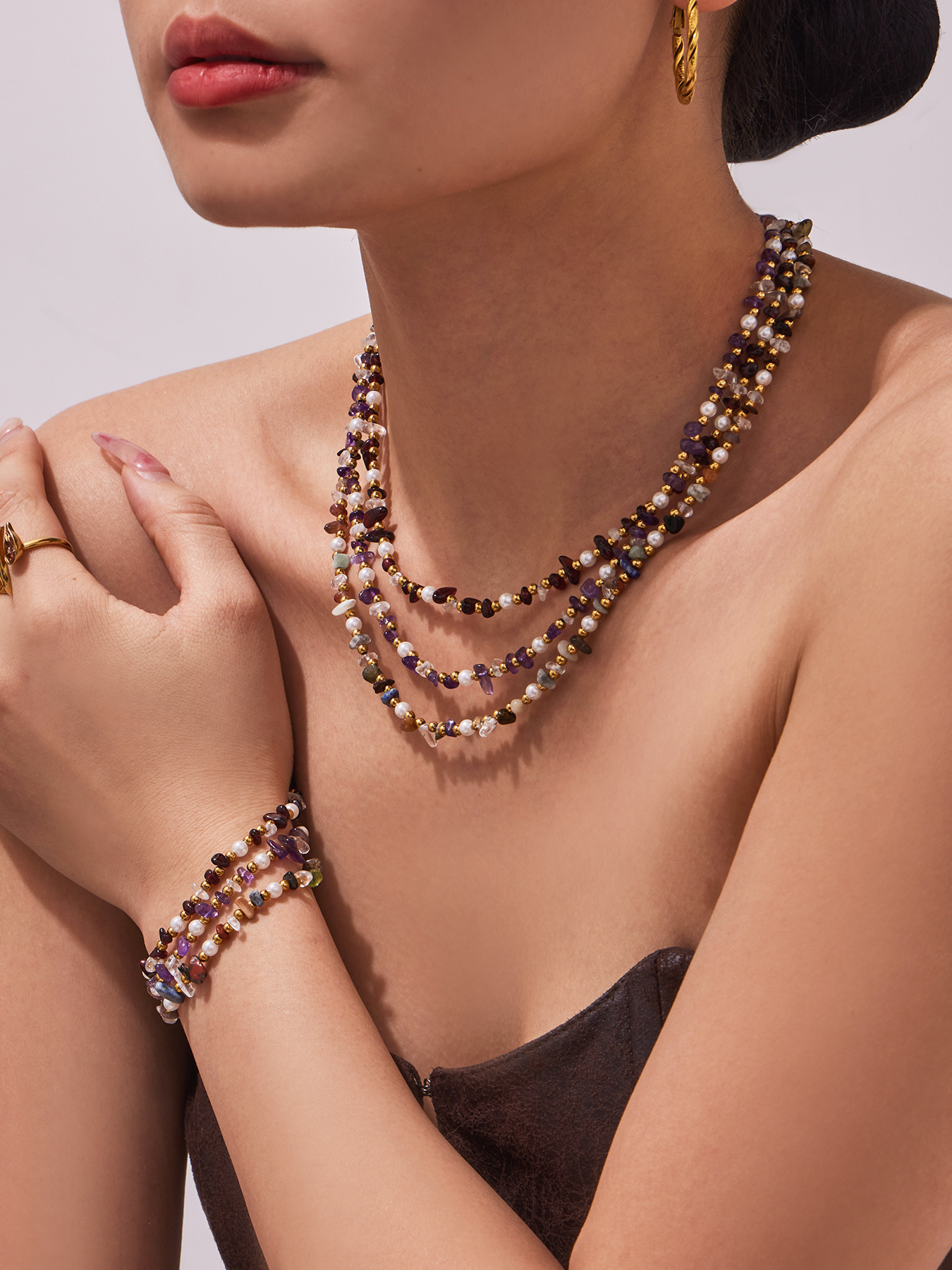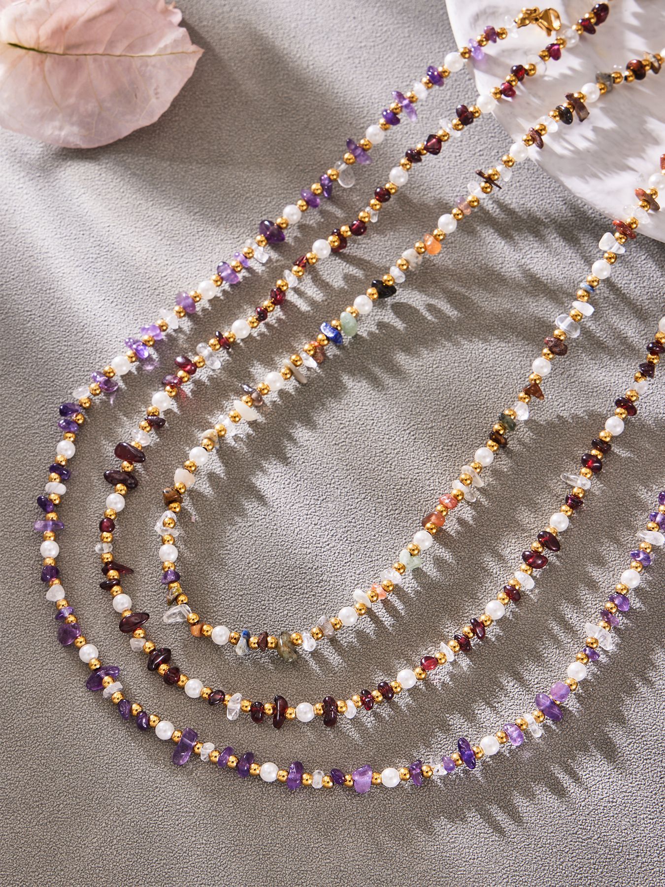 Elevate your everyday style with our set of three handcrafted beaded necklaces, a stunning fusion of natural gemstones designed for effortless layering and timeless elegance.