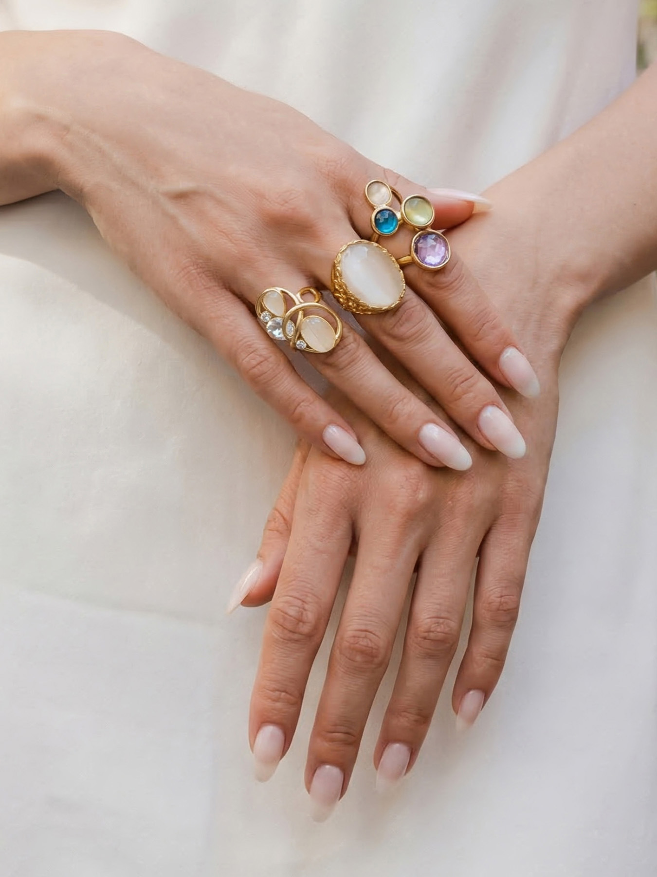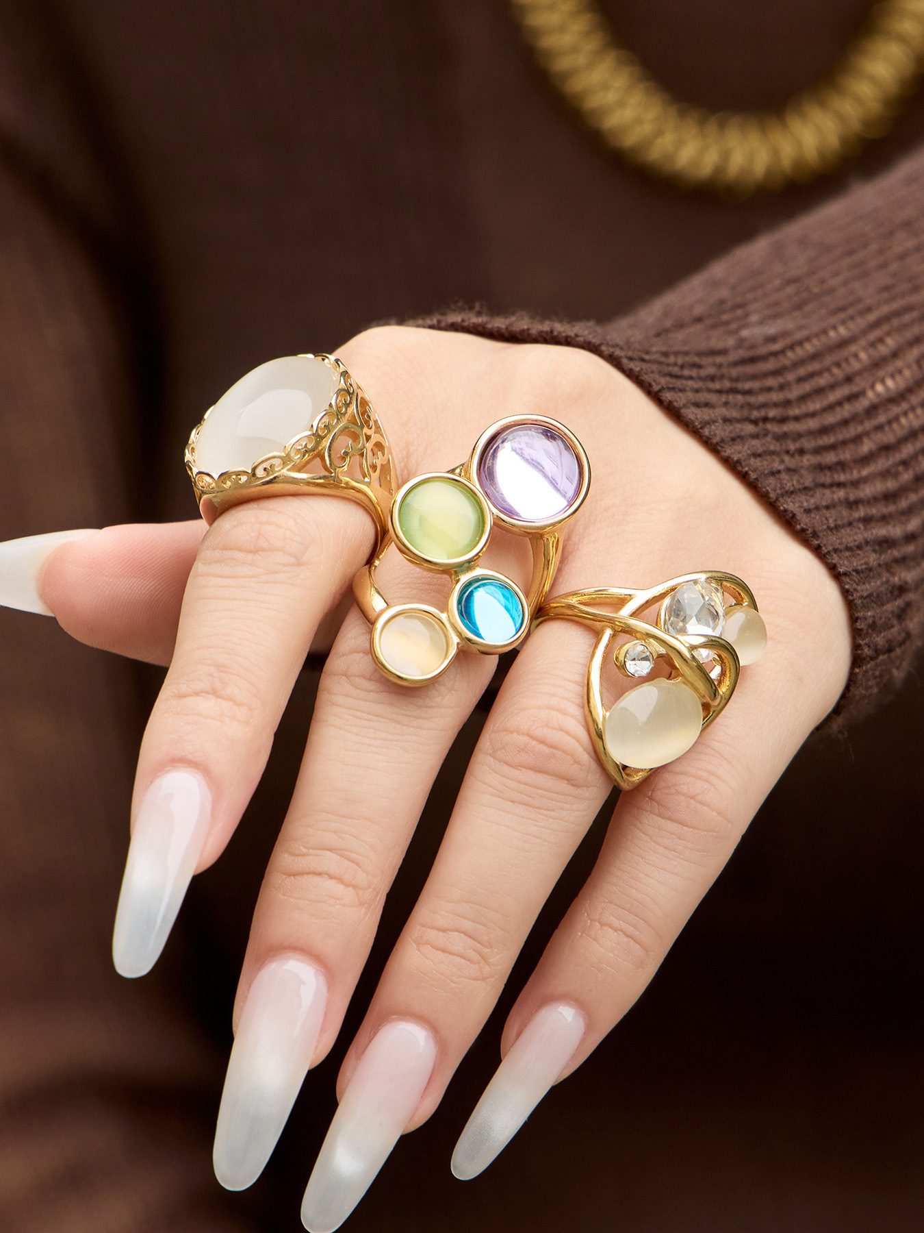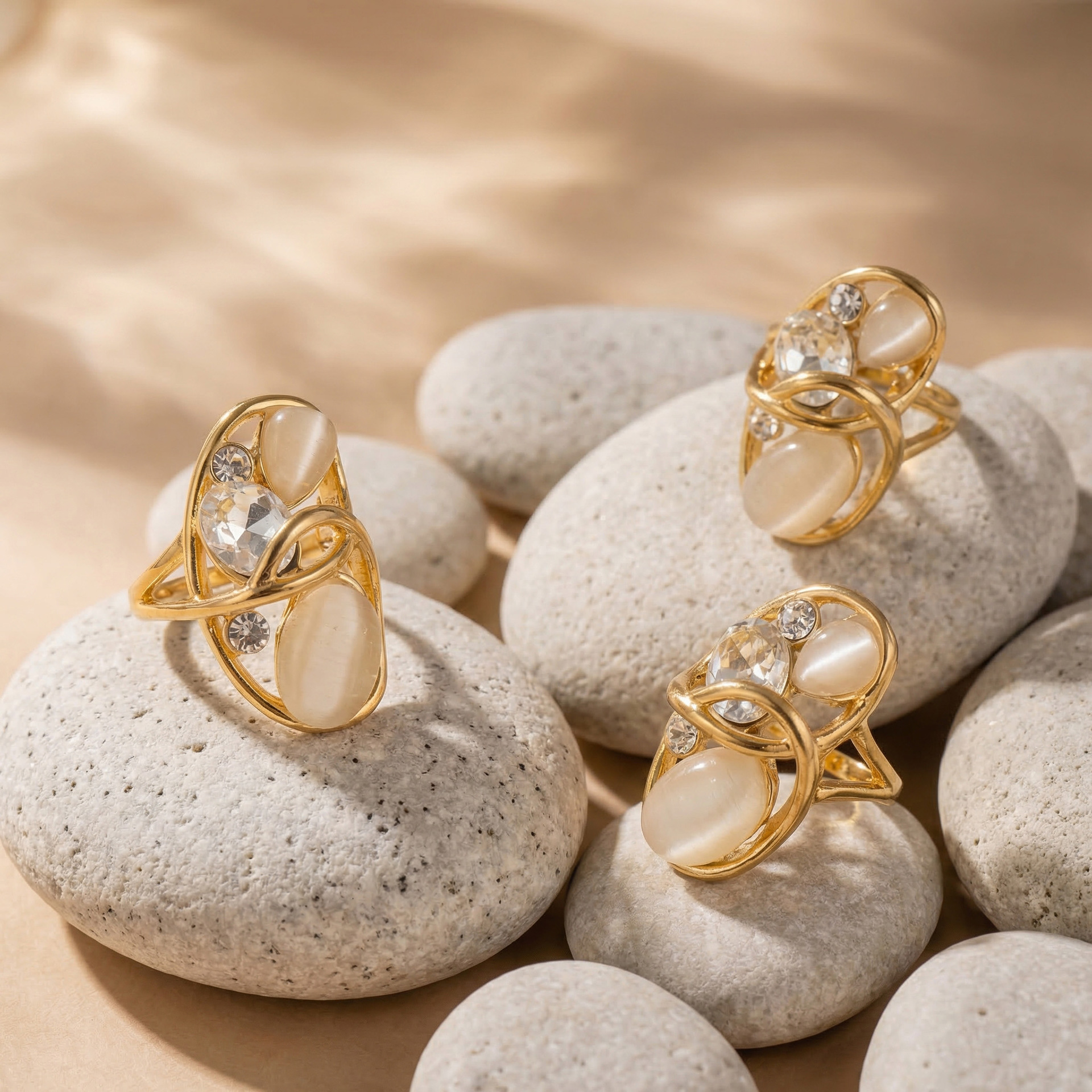 The centerpiece of each design is the stunning cat’s eye stone, which displays a soft, flowing light effect that shimmers beautifully with every movement. Whether in soft pastel tones or classic elegant hues,