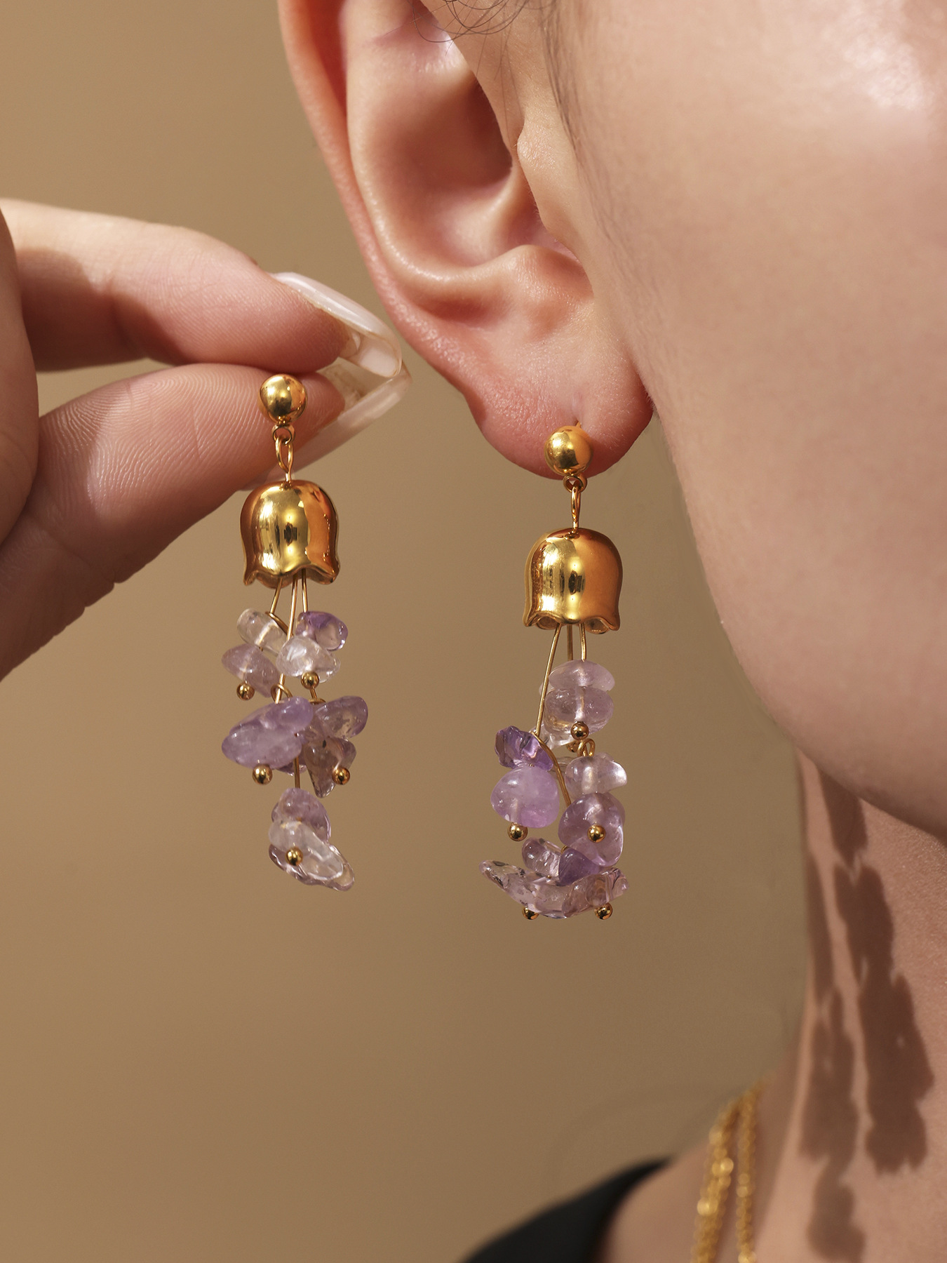 Elegant Lily of the Valley Titanium Steel Crystal Earrings