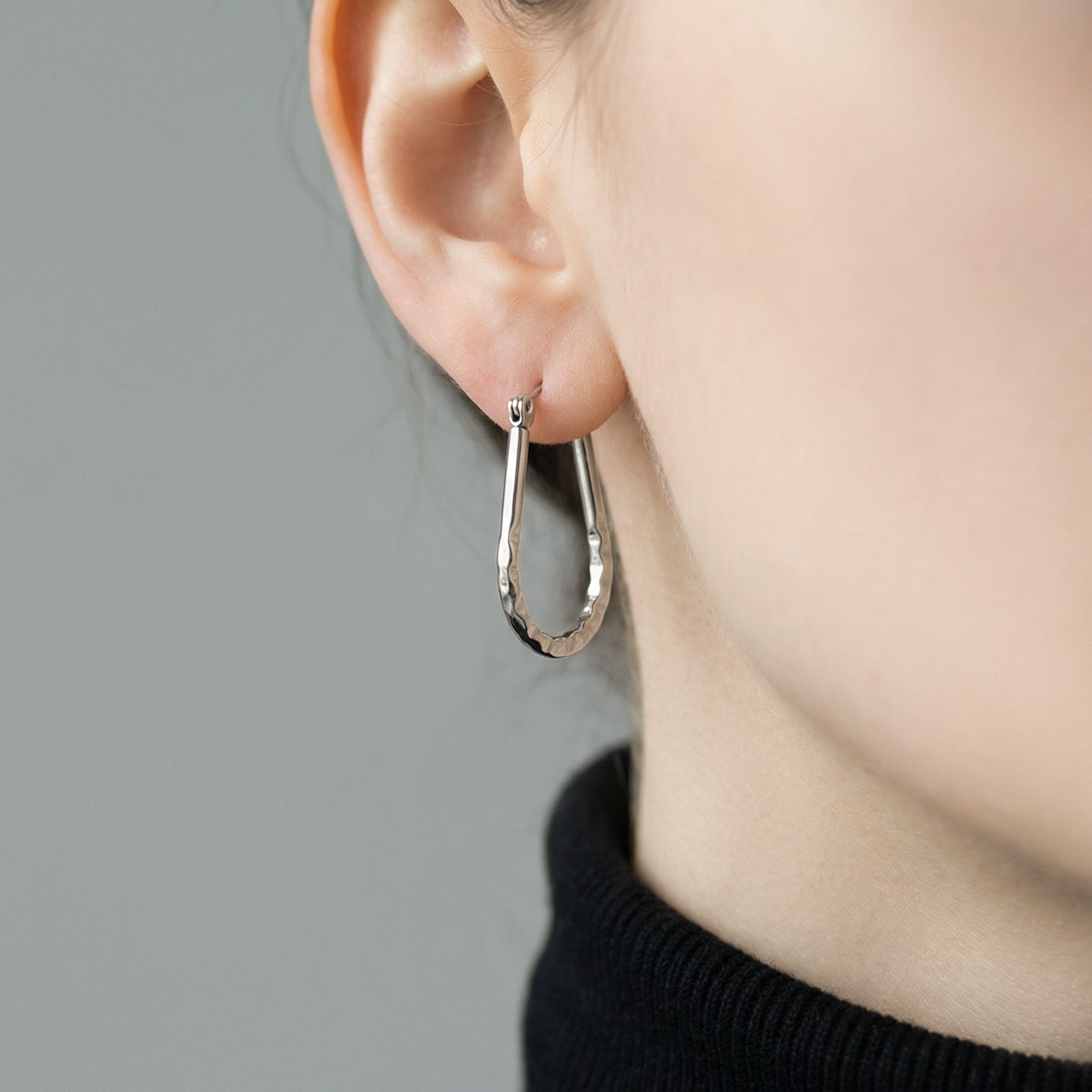 316L Stainless Steel Textured Click Hoop Earrings for Women