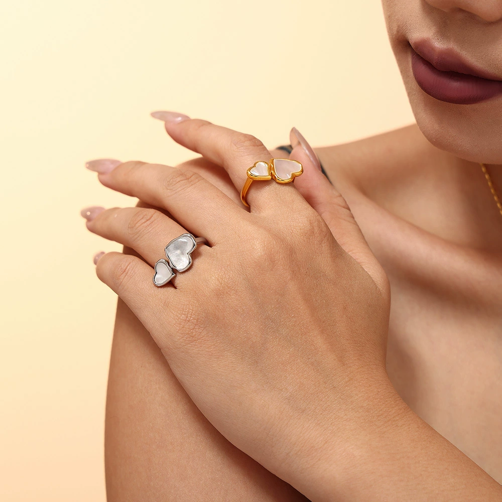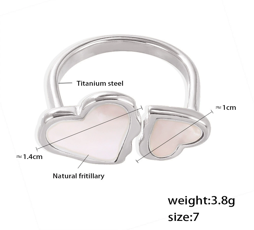 Why This Ring: Durable titanium steel = no tarnishing; natural fritillary brings one-of-a-kind iridescence; the split heart design adds a whimsical, personal feel—ideal for anyone who loves tiny, meaningful accessories.