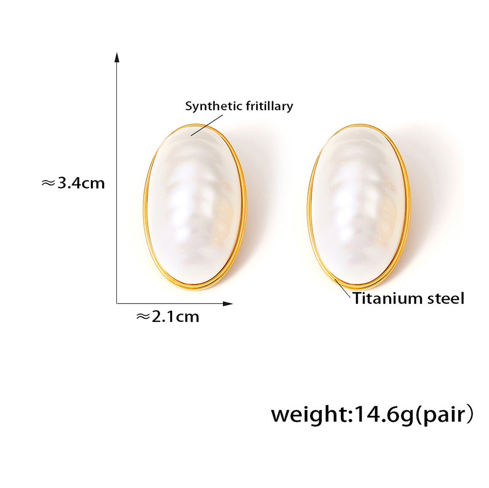 This earring design blends two distinct elements to suit modern women’s multifaceted lives: the soft, luminous texture of synthetic fritillary (embodying understated elegance) and the sleek, durable gold-toned titanium steel frame (infusing refined boldness). Our core idea was to create a piece that’s both decorative and practical: its moderate size and lightweight build let it transition smoothly from daily routines to special moments, helping wearers exude effortless charm in any scenario.