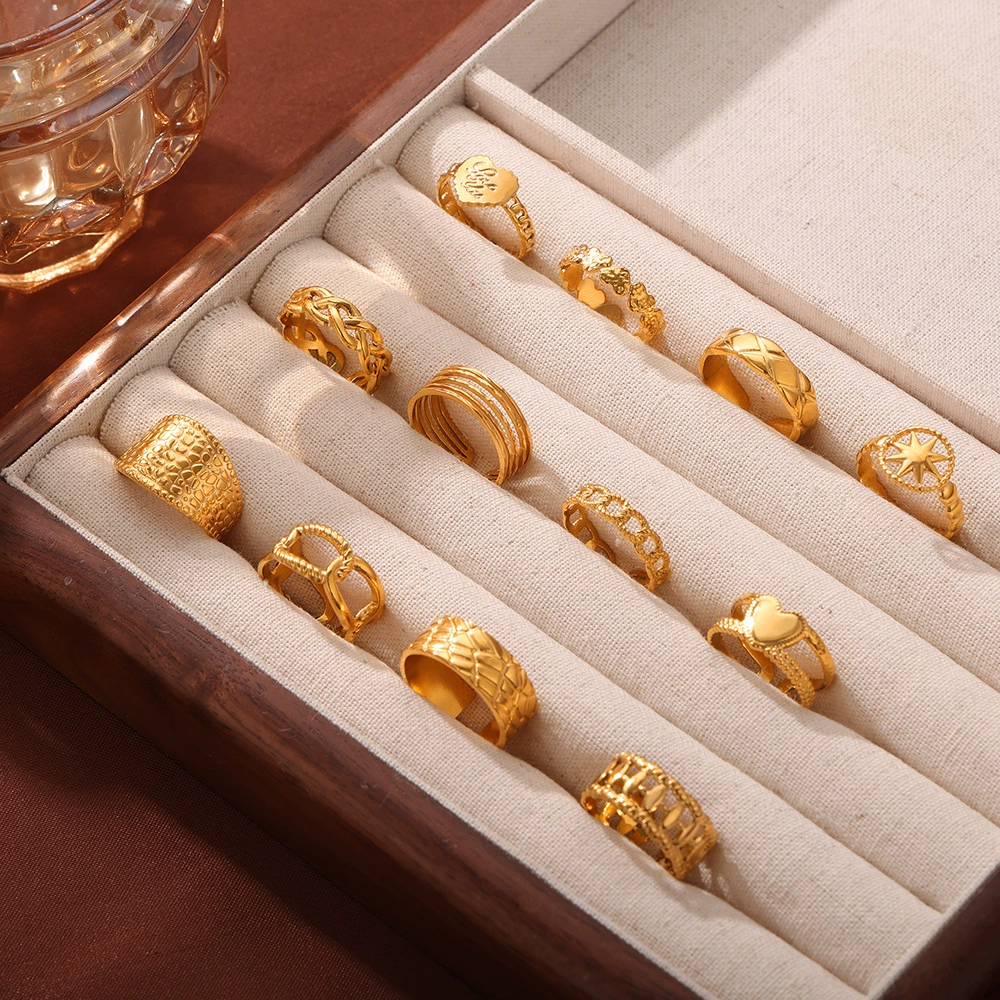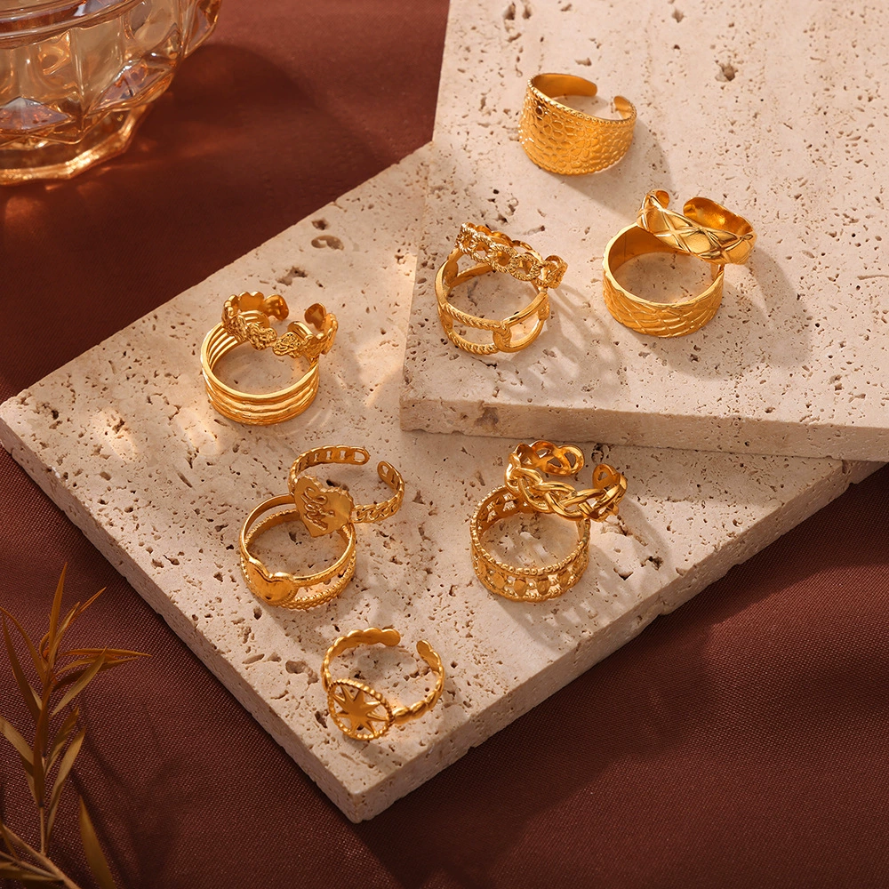 These textured, versatile golden titanium steel open rings have become a go-to for jewelry lovers—and it’s easy to see why: their mix of bold design, everyday practicality, and enduring style hits all the right notes.