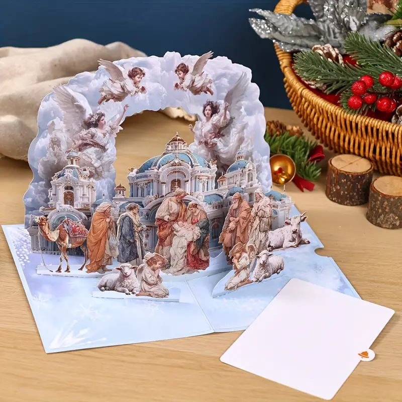 Nativity in 3D: Unfold the Holy Christmas SceneThe sacred Nativity story leaps off the page in vivid 3D—this card holds the timeless joy of Christ’s birth, a story of hope and divine love. More than a card, it’s a tangible blessing, a quiet reminder of the holy miracle. May this sacred scene fill your heart with peace, and the light of Christmas linger in your days always.