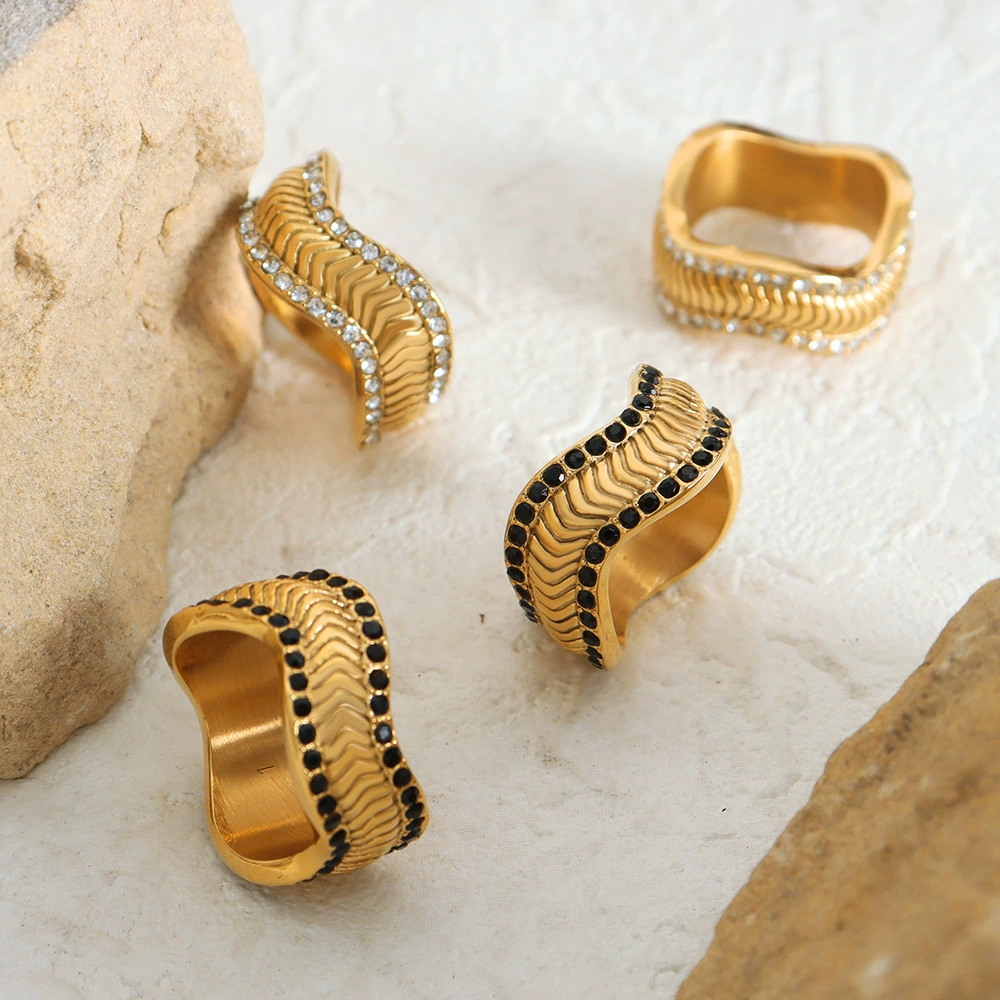 Wavy Paved Crystal Titanium Steel Ring – Bold Sparkle for Everyday Glam