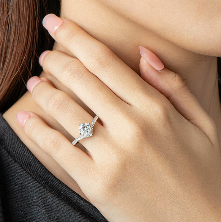 Romantic S925 Sterling Silver Heart Moissanite Engagement Ring