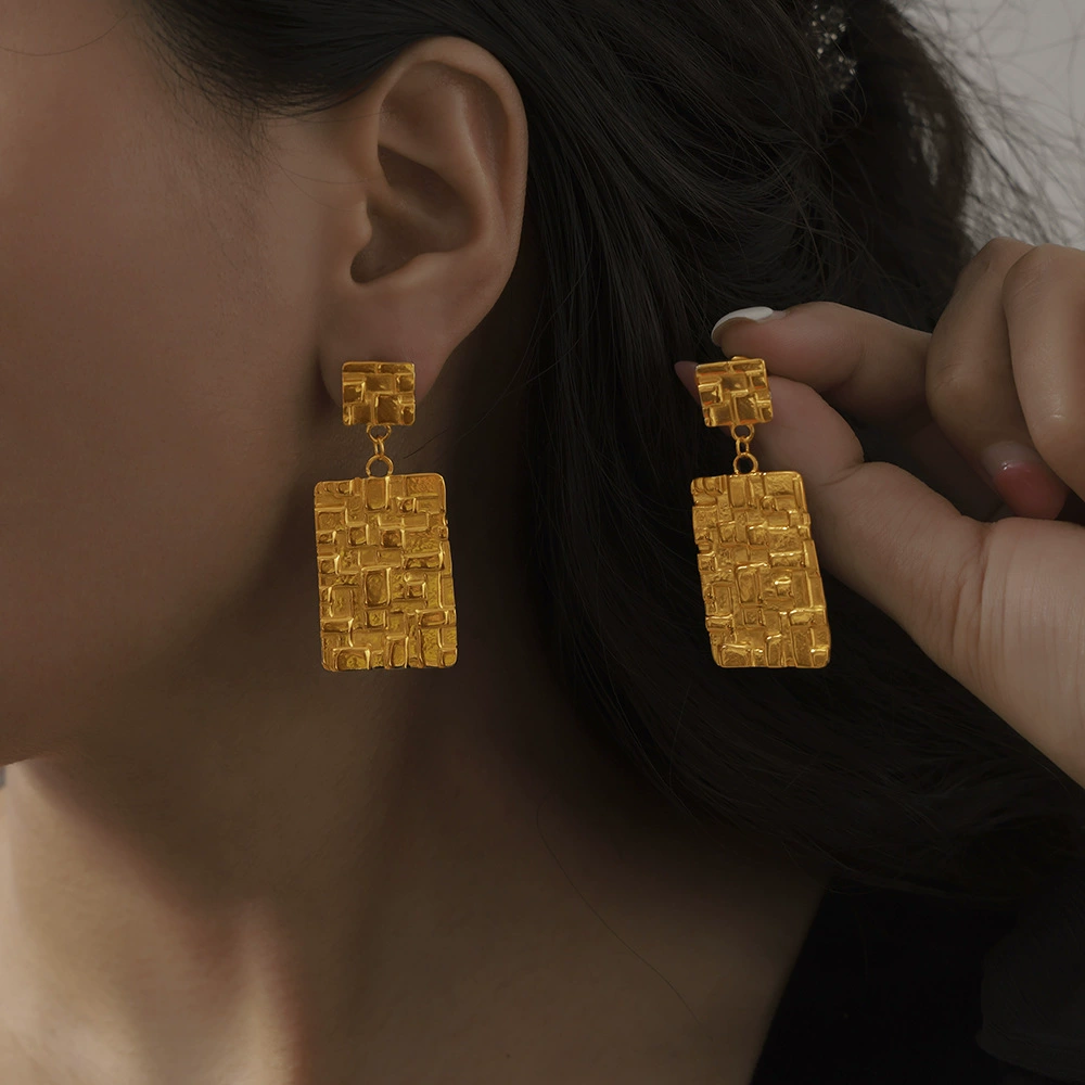 Retro - textured Titanium Steel Gold - Plated Stud Earrings