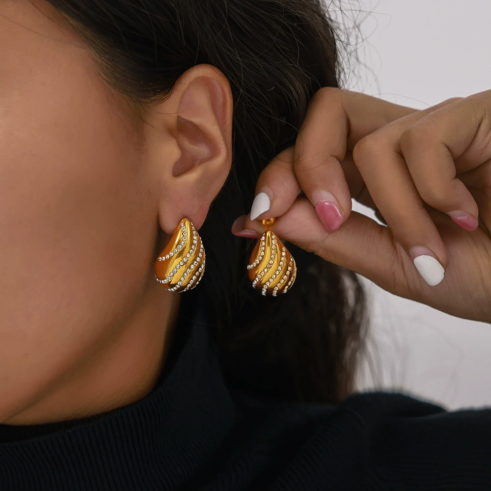 Drop-shaped titanium steel stud earrings inlaid with rhinestone