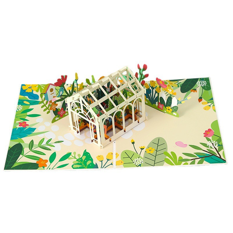 Garden greenhouse 3D pop up card with flowers